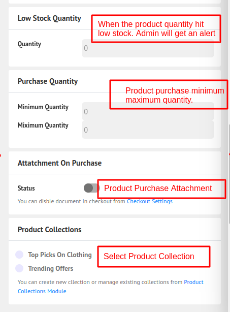 7. Low Stock and Purchase Quantity, Attachment, Collection