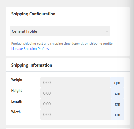 Shipping Configuration Depends on What Shipping Option is Selected. Flate Rate, Product Wise, or Shipping Profile.