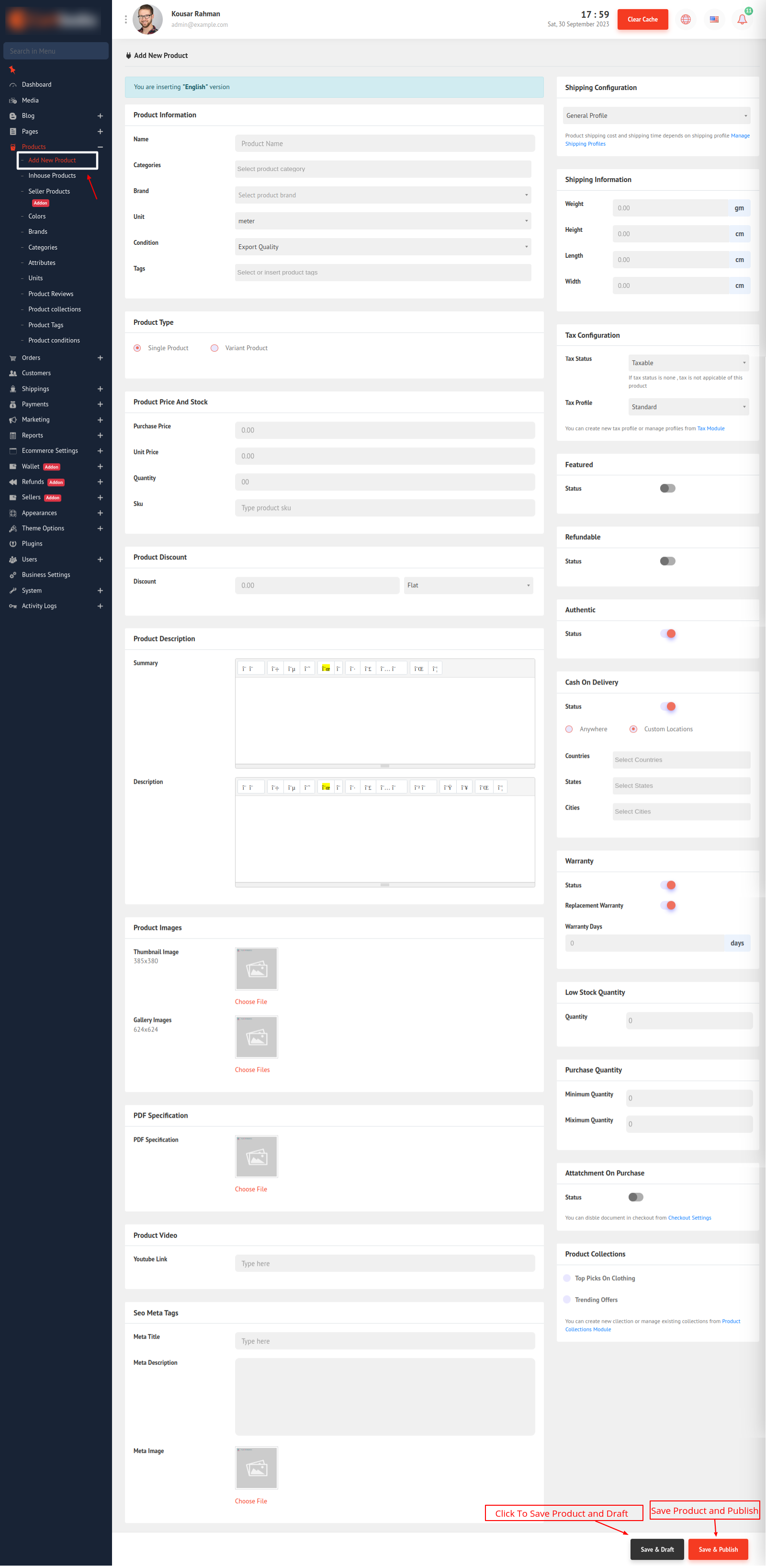 In this post, we will learn how to Create New Product. Go to Products > Add New Product.