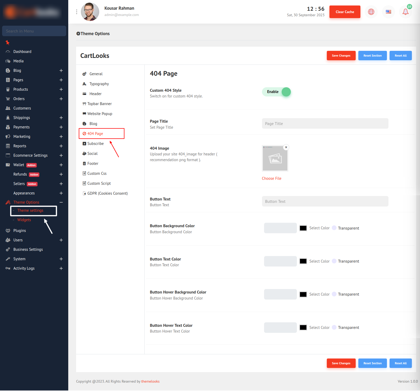 Click Save Changes to save theme options. Click Reset Section to reset only this section. Click Reset All to reset all theme options.
