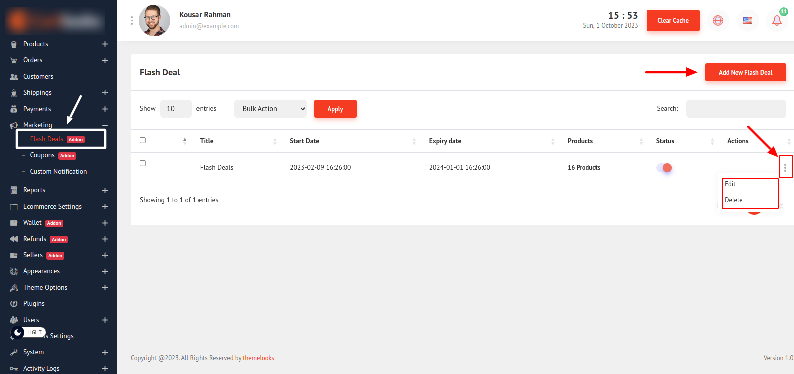 After the activation, go to Marketing > Flash Deals. You will be redirected to the flash deal page.