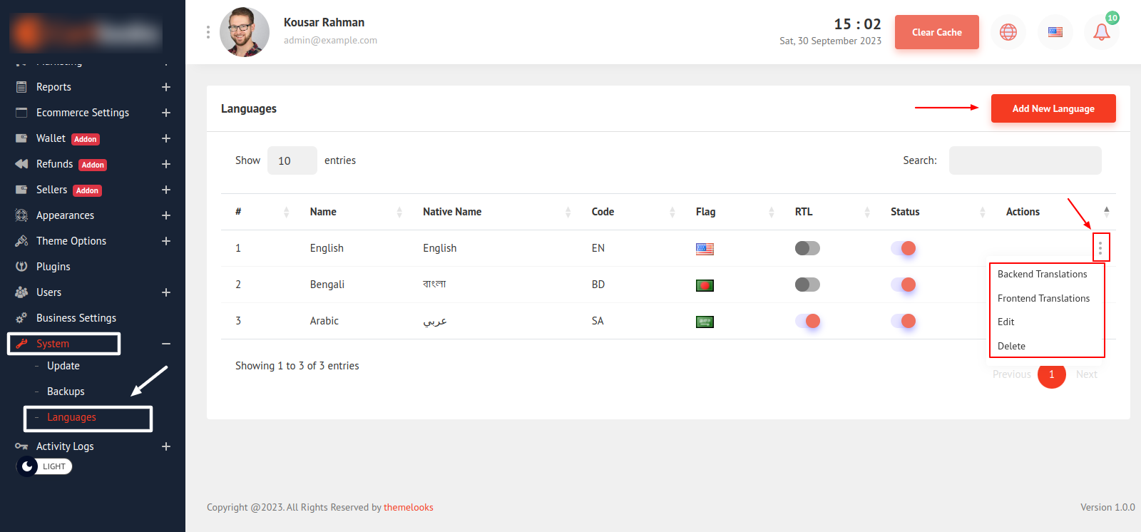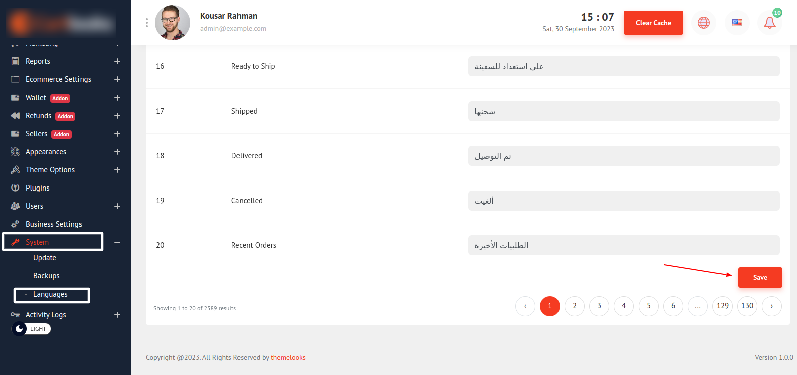 To Edit a Language Click The Edit from the language list Action options. It will redirect you to edit page.