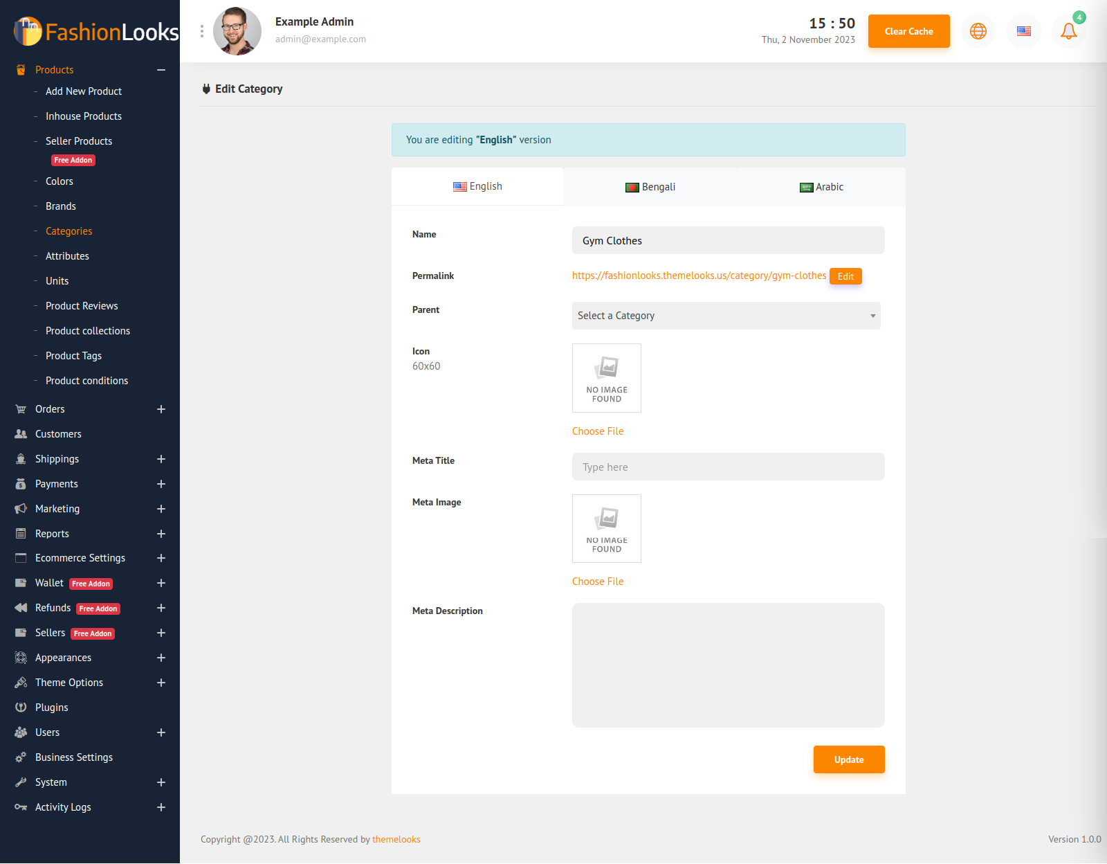 If you want to Edit a category click the Edit link from the list page action column three dot. It will redirect you to another page. You can also delete a category by clicking Delete Link.