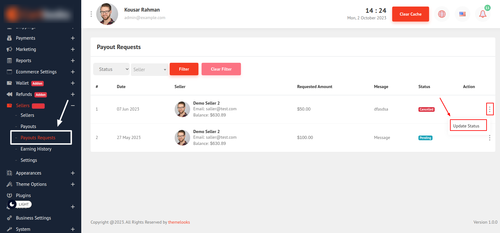 Follow Seller > Payout Request to view all requests from sellers.