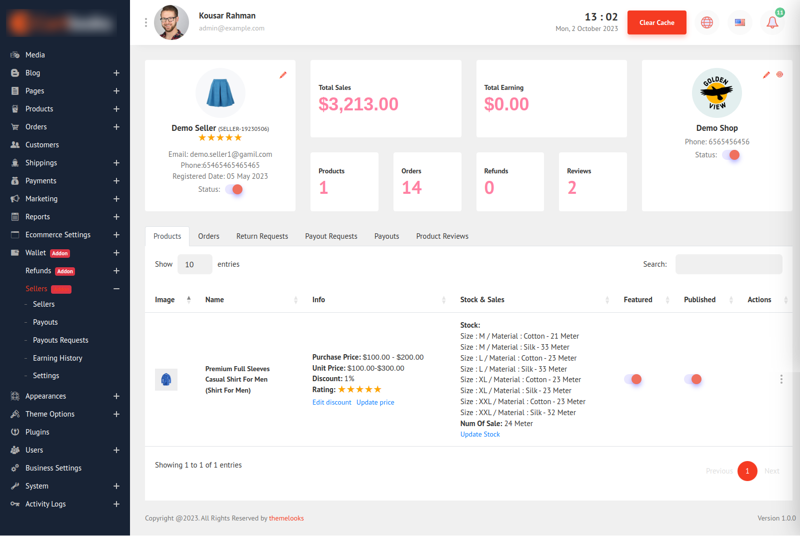 From here you can find all the details about the seller. And also can update seller or seller shop information.